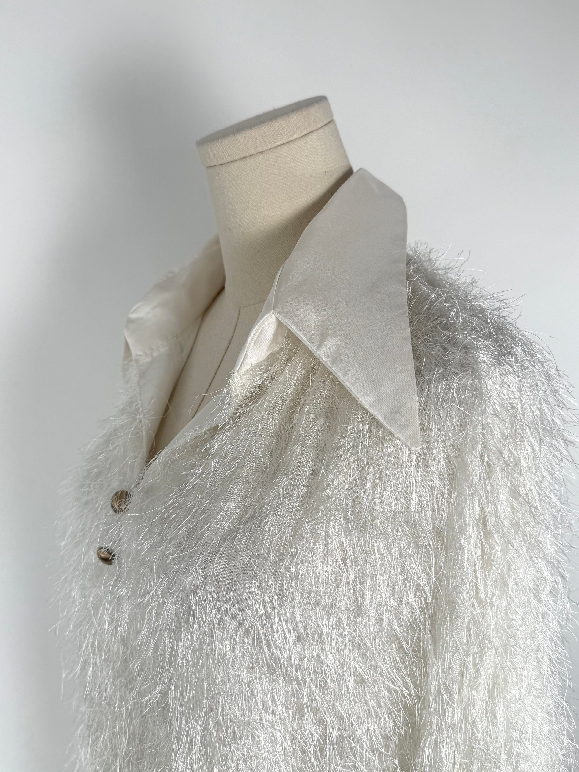 Elevate your wardrobe with this distinctive Wink Caftan, a handmade treasure crafted right here in Kansas City. Constructed from carefully sourced vintage and upcycled materials, each piece showcases rich texture and character you won't find anywhere else. The statement bold collar and gleaming gold buttons add refined sophistication, while the artisanal construction ensures this one-of-a-kind garment is truly unique to you. A celebration of sustainable style and local craftsmanship.