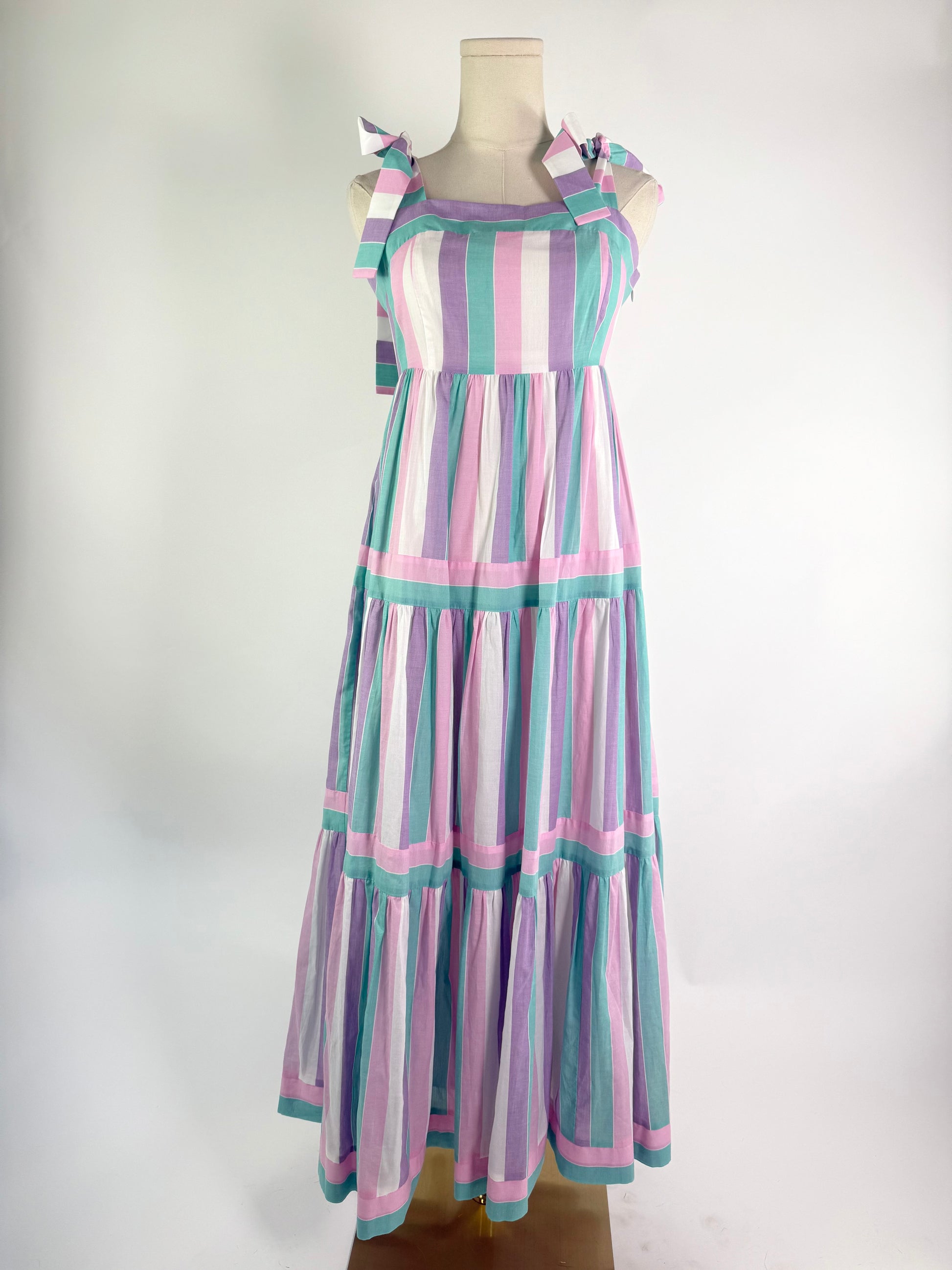 The Hunter Bell Jessica Dress combines delicate pastel stripes with a tiered skirt for an effortlessly elegant look. Crafted from lightweight cotton, it offers breathable comfort perfect for spring and summer days. Adjustable straps ensure a personalized fit, while a discreet zipper closure adds convenience. This dress is a refined choice for warm-weather occasions, blending style and ease with sophisticated charm.