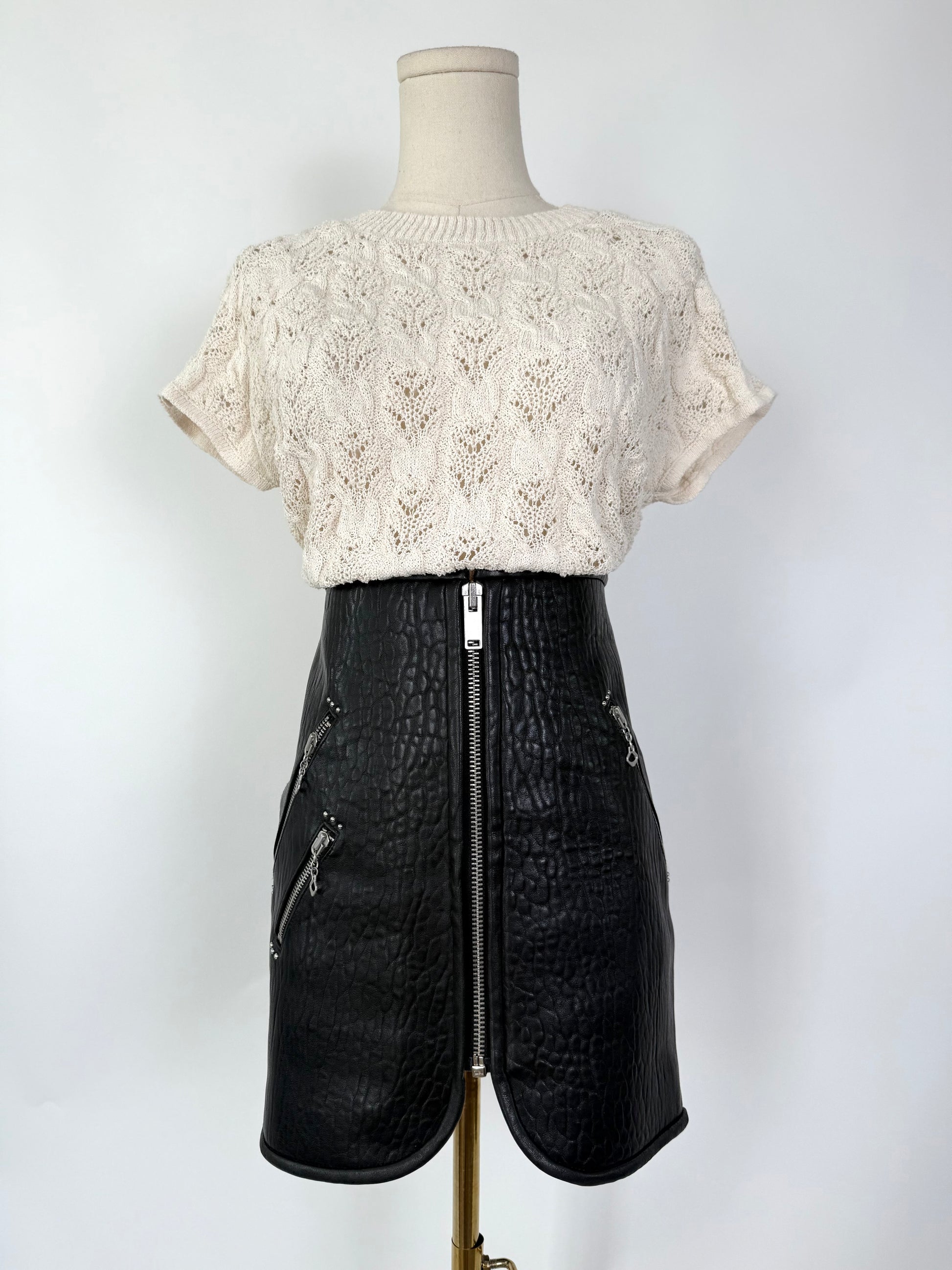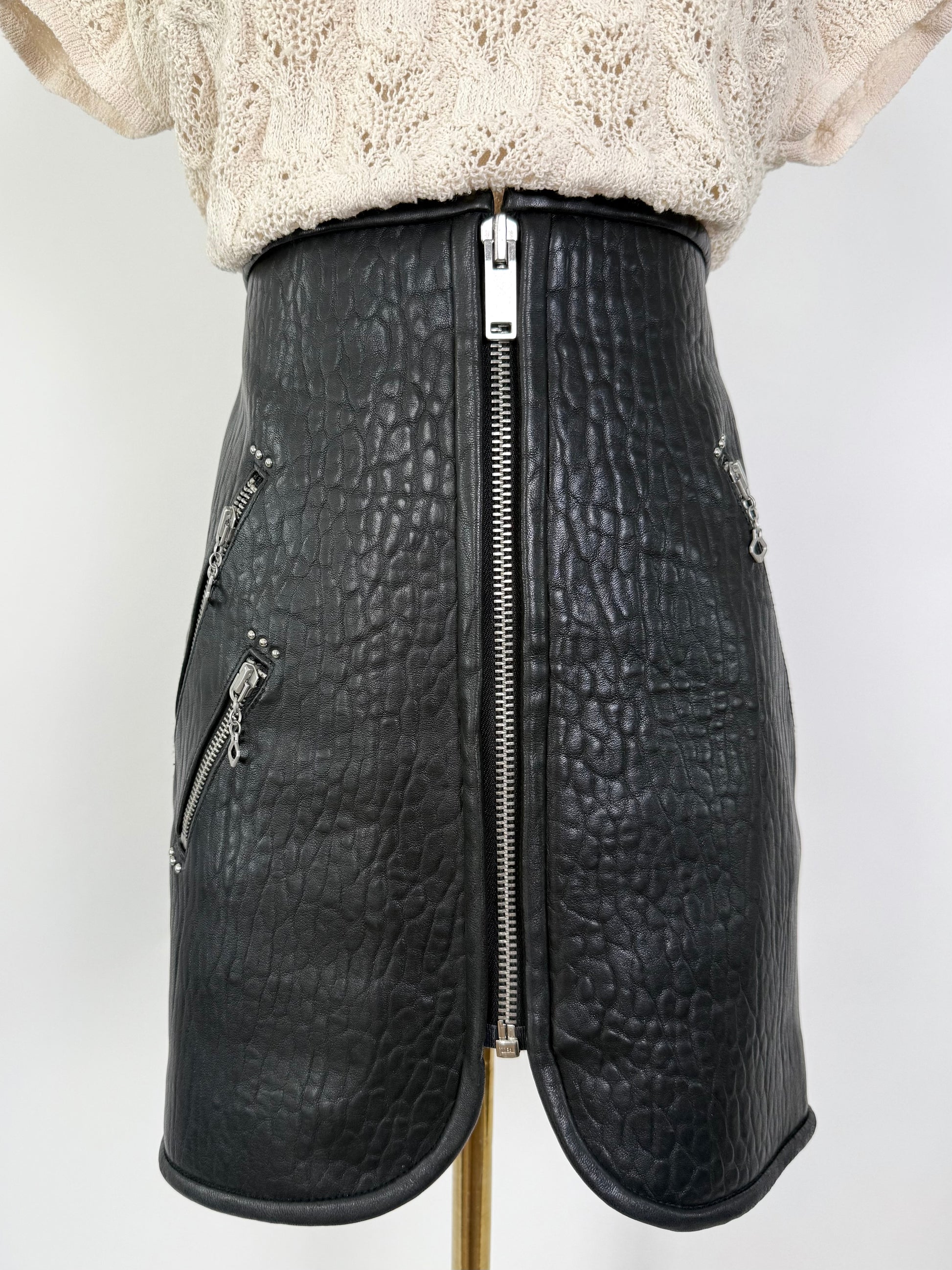 The Isabel Marant Leather Skirt combines thick lamb leather with silver hardware and a zipper closure for an edgy, sophisticated look. Its sleek black color and structured design make it an easy-to-style piece, perfect for embodying cool, effortless confidence.