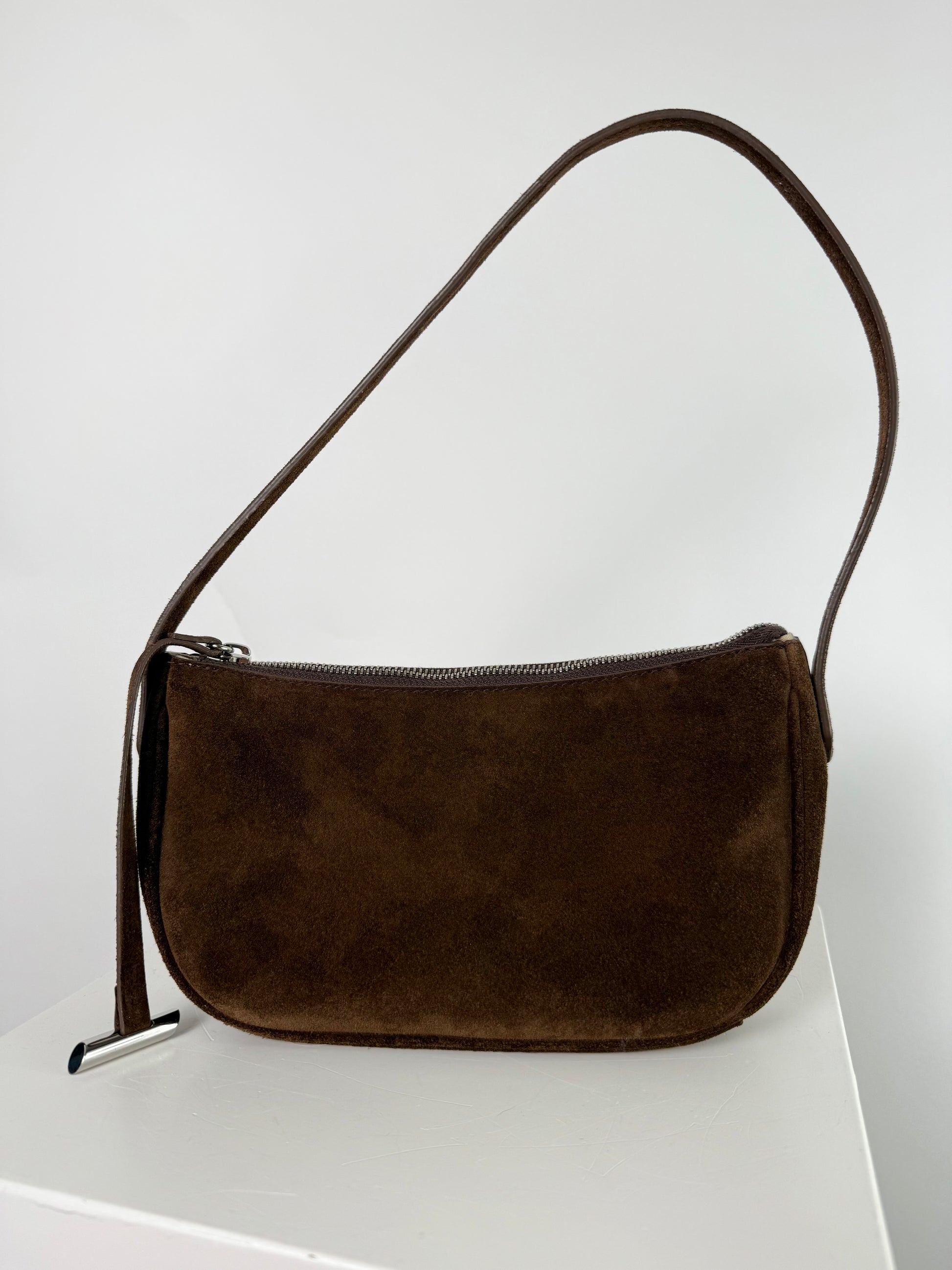 The Little Liffner Mini Moon Suede Shoulder Bag is a sophisticated essential, crafted in rich brown suede for a refined look. Its small, lightweight design makes it effortlessly easy to carry, combining practical style with understated elegance for everyday use.