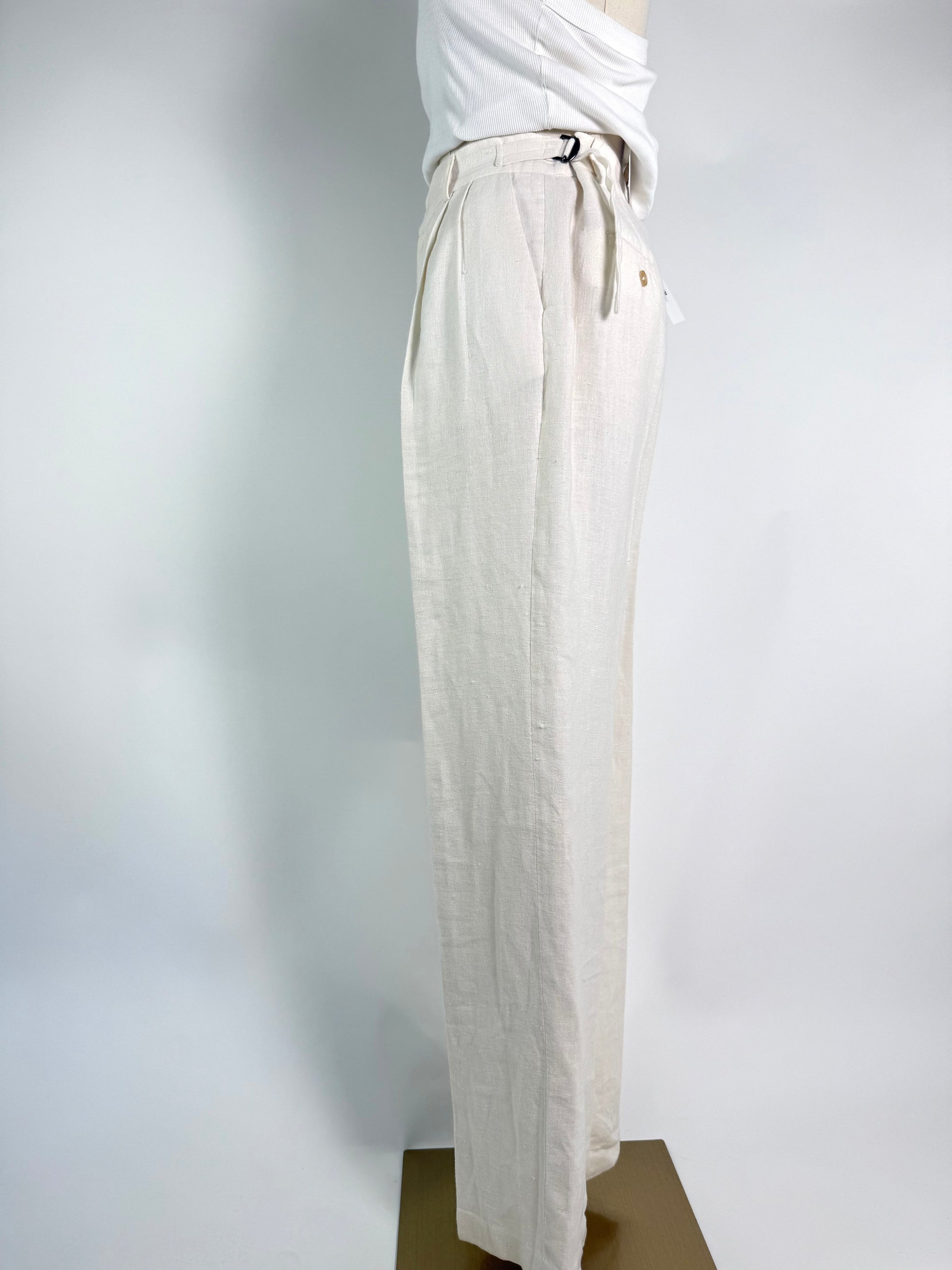 Crafted from breathable linen, The Attic Linen Trouser in crisp white offers timeless elegance with a modern twist. Its adjustable sizing ensures a perfect, comfortable fit, making it ideal for both polished office looks and refined casual wear. Elevate your wardrobe with this versatile piece that combines sophistication and effortless style.